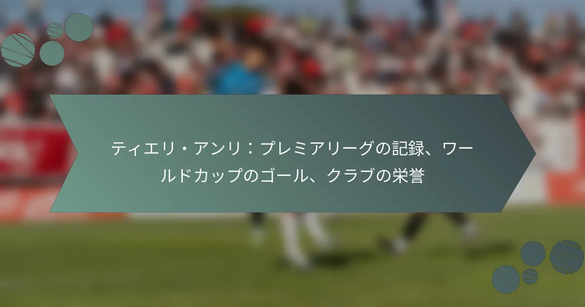ティエリ・アンリは、特にプレミアリーグや国際舞台での華々しいキャリアの中で、多くの記録を樹立しました。彼の業績には、驚異的な得点記録やマイルストーンが含まれ、サッカー史における彼の遺産を確固たるものにしています。